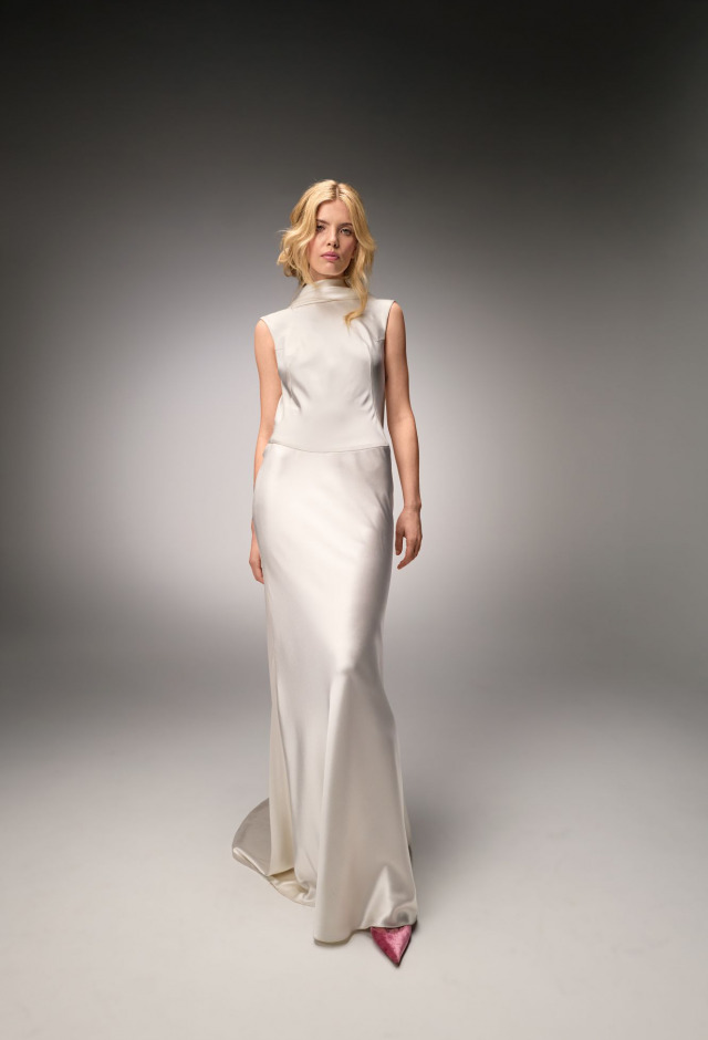 Price available on requestThe Doll dress reveals a corseted mini silhouette, inspired by the fully crystalised red couture mini worn by Taylor Swift at the 2025 Grammy Awards. The design captures the same striking form, presenting a more romantic, bridal iteration. Offered in heavy silk satin for a pearlescent finish or in silk double georgette for a softer, matte drape, the design features an asymmetric one-shoulder neckline and a layered draped skirt, balancing structure with playful movement.