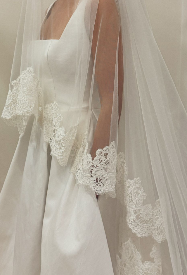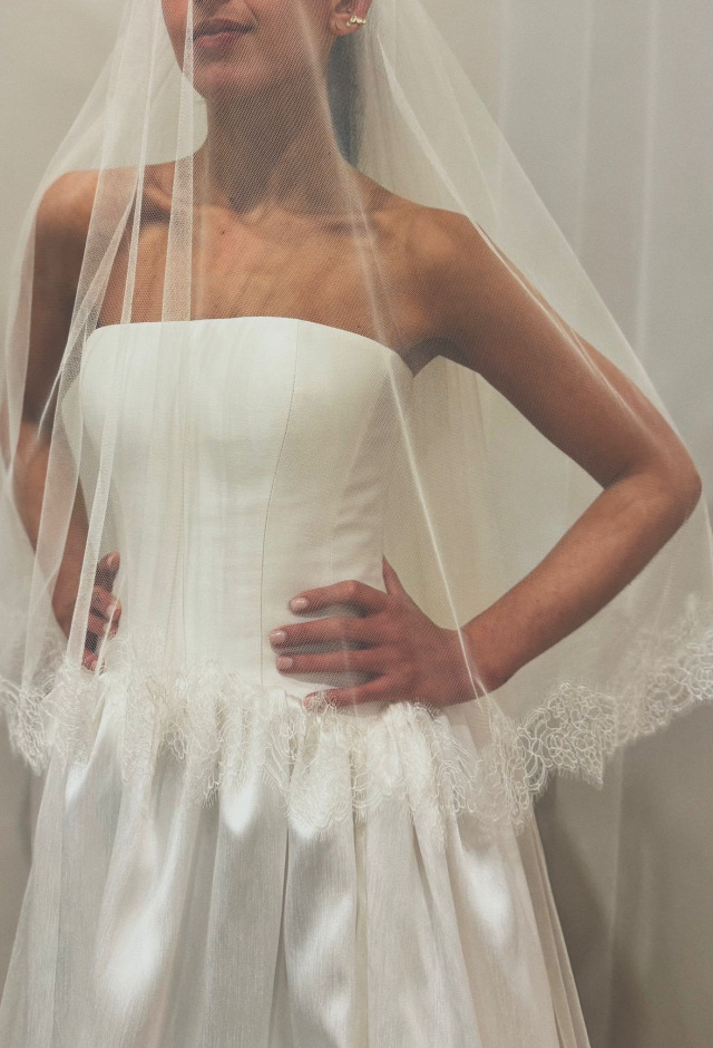 Price available on requestSilk tulle two tier veil with delicate corded lace trim.