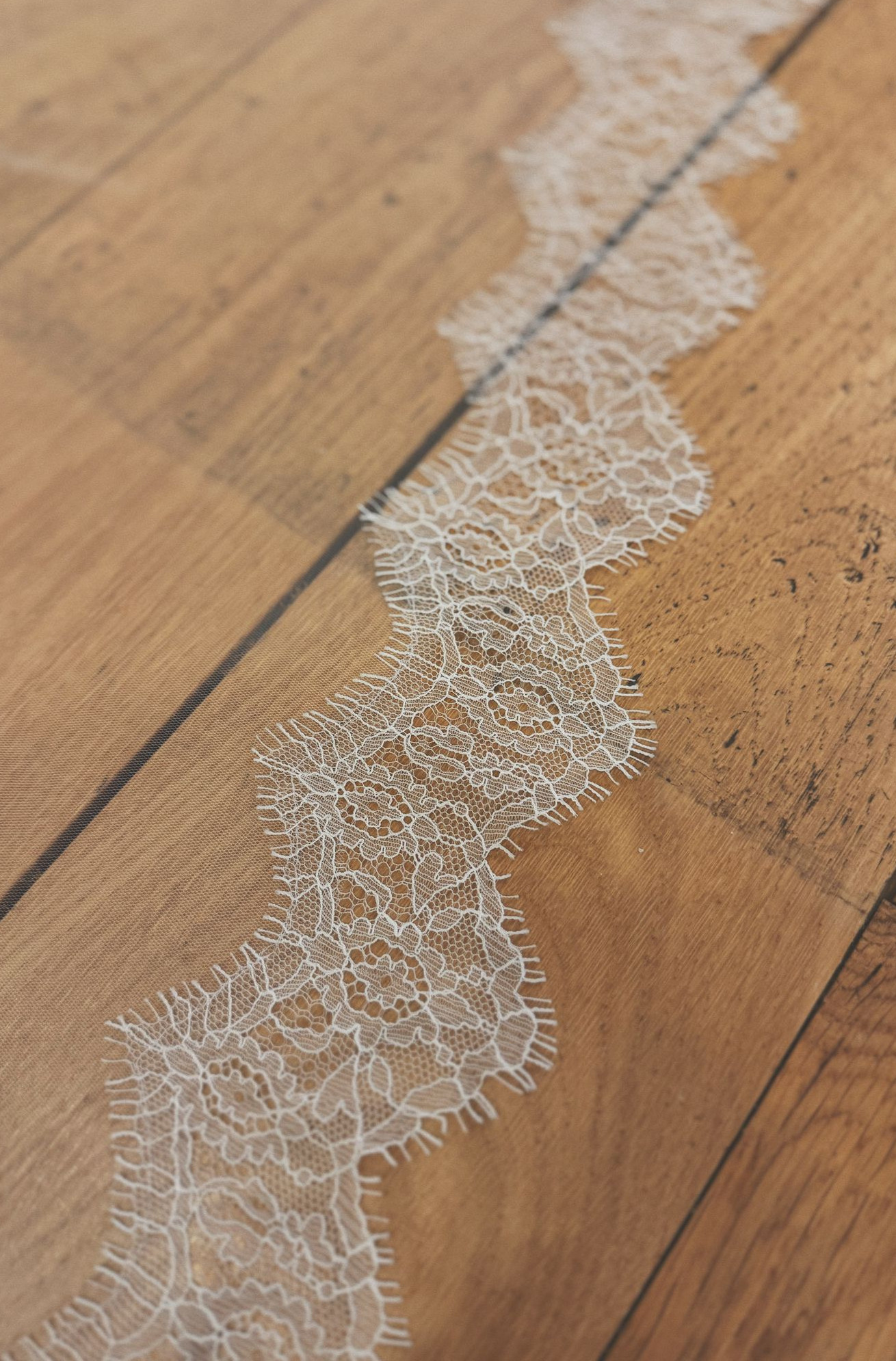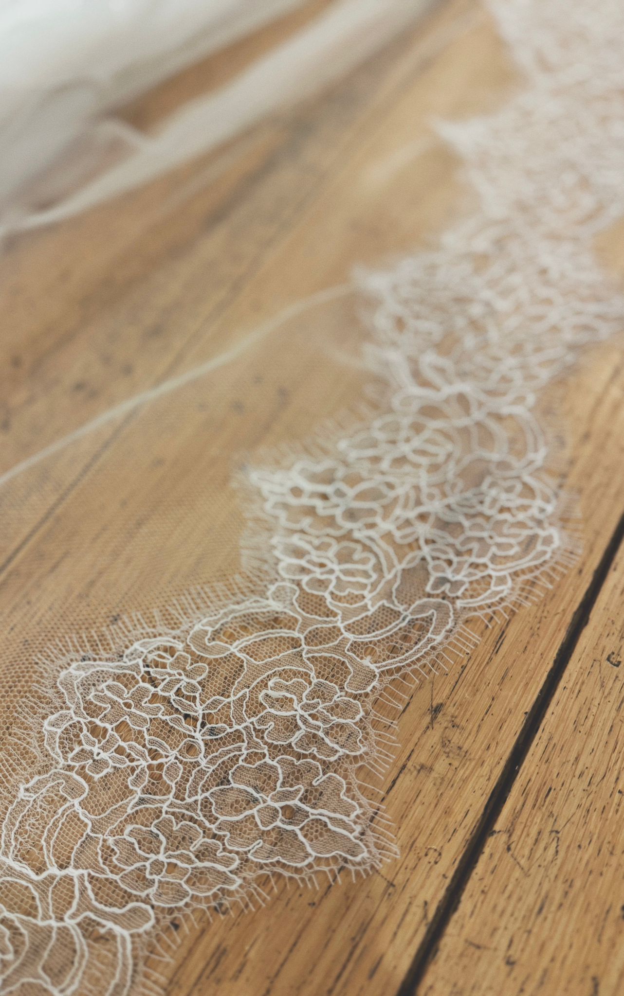 Price available on requestSilk tulle two tier veil with delicate Chantily lace trim.