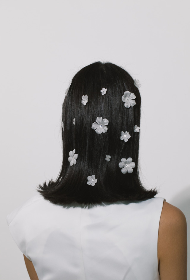 Price available on requestWith their unique magnet closure, the Anemone Hair Magnets make it possible to achieve the look of flowers floating in the hair, even scattered up and down loose locks in a seemingly impossible arrangement. This set of 8 is made by hand in New York, with silk satin-faced organza flowers set in the center with Austrian crystals, or crystal pearls. Dimensions: Small Flower – 5/8in Medium Flower – 1in Large Flower – 1 1/2in