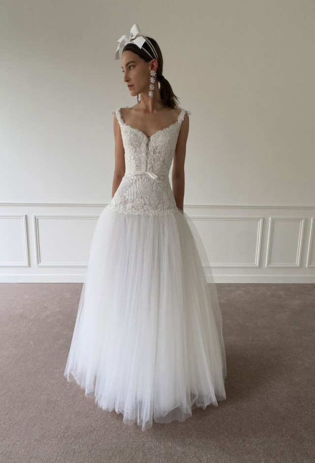 - Giambattista Valli Aout Wedding DressPrice available on request- Tank-style dress with an embroidered lace bodice and a multi layered tulle skirt