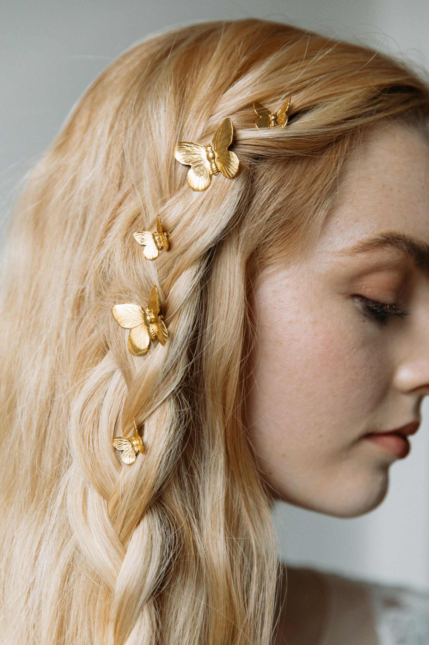 This set of five is comprised of sprightly golden butterflies of different sizes, complete with intricately etched details.